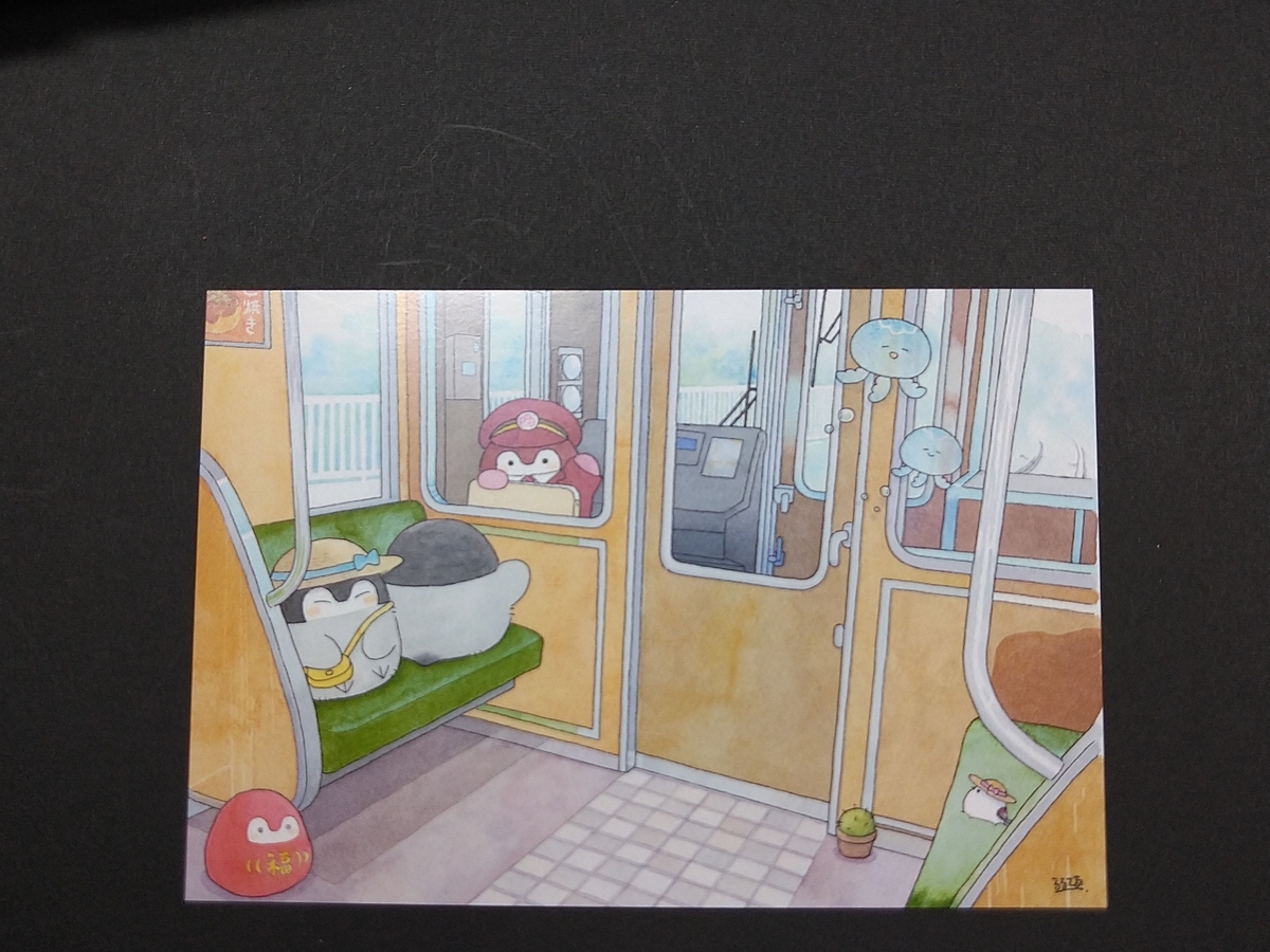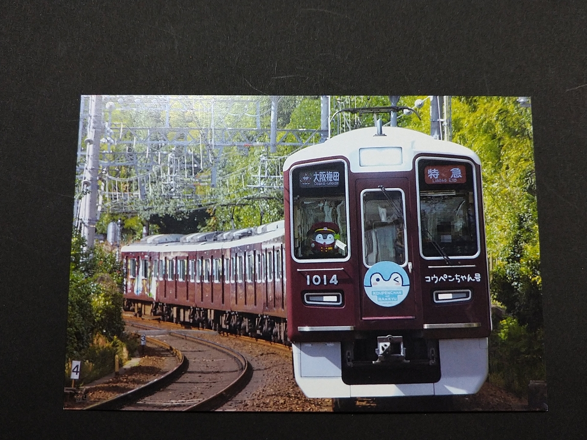 2023-05-14 阪急電車 コウペンちゃん号 ポストカードセット グレイパーカーサービス-ノベルティ 今回は、阪急×コウペンちゃんのポストカードです。受注生産で発売された、阪急電車「コウペンちゃん号」車掌さんなコウペンちゃんぬいぐるみ(特大)に購入特典として付属しました。5枚セットです。 裏面は共通の絵柄です。